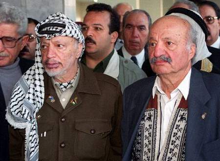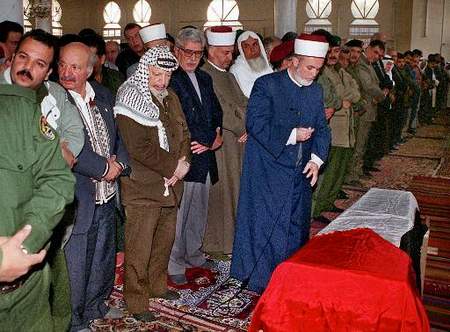 中新網11月12日電 1999年12月11日,巴勒斯坦民族權力機構主席阿拉法特與兄弟法特希·阿拉法特在加沙南部參加姐姐伊納姆的葬禮。(春風)