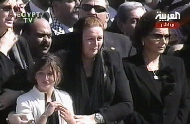 阿拉法特的妻子(中)和女兒(左)出席葬禮