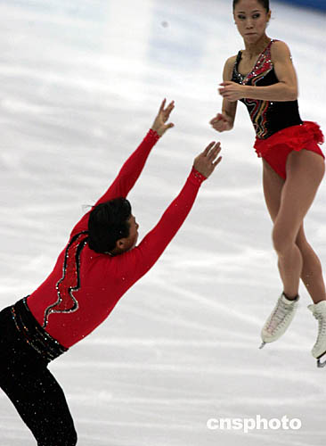 世界頂級組合之一的中國金牌搭檔申雪/趙宏博,11月12日晚在北京舉行的世界花樣滑冰大獎賽中國站雙人滑自選動作比賽中,憑借新編排的《宋氏王朝》之精彩表演獲得冠軍。申雪/趙宏博的最終目標(biāo)是2006年的冬季奧運會金牌。中新社記者:任晨鳴
