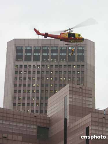 二零零四“亞洲消防首長協(xié)會”年會十一月十七日在臺北舉行。臺灣島內特搜隊員表演直升機滯空下降。作者:董會峰