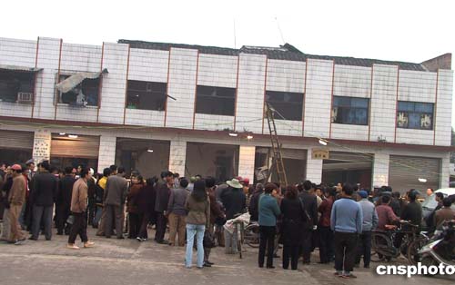 十一月十九日早上,重慶銅梁縣巴川鎮洗馬村四社發生爆炸的茶館外站滿了圍觀群眾。十八日,該茶館發生爆炸,目前已造成十四人死亡,二十九人受傷。作者:鄒輝
