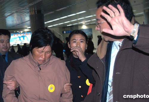 圖:包頭空難機組人員家屬抵達包頭