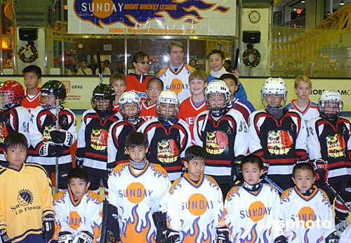 2004年亞太區少兒冰球賽25日在香港西九龍中心舉行﹐來自北京﹑新加坡﹑美國﹑加拿大﹑英國﹑澳洲等14支隊150多名選手參加本次比賽﹐中新社記者:趙振清