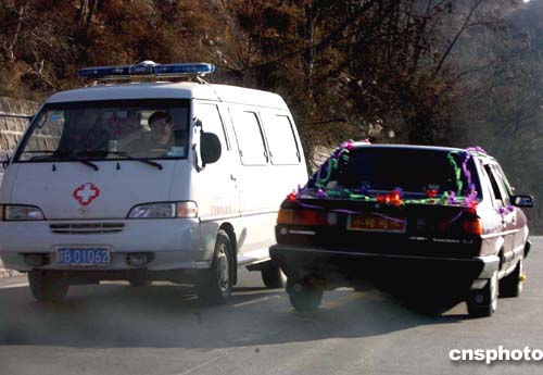 圖:救護車婚車背道而馳 銅川陳家山亦憂亦喜
