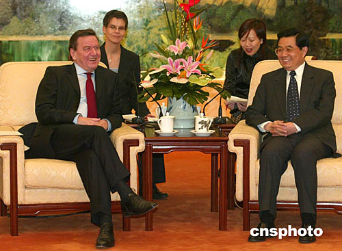 施羅德說,目前德中關系發展順利,不存在任何突出問題。兩國不僅在政治、經貿領域,而且在文化、科技、青年交流等方面都保持著良好合作,在重大國際問題上看法相同或相似。德方對兩國關系的發展感到滿意。德國政府將繼續奉行一個中國政策,不做不符合一個中國政策的事。德國有改造老工業區的經驗,愿意積極參與中國振興東北等老工業基地的發展戰略。