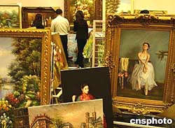 當(dāng)?shù)貢r(shí)間十二月十一日,美國洛杉磯舉行華商展覽會(huì),僑居美國的華人藝術(shù)家油畫展賣頗受歡迎。作者:賈國榮