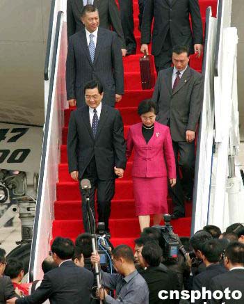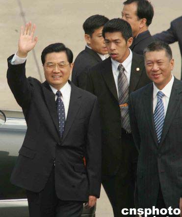 12月19日上午,中共中央總書記、國家主席、中央軍委主席胡錦濤首次乘專機抵達澳門,出席澳門回歸祖國五周年慶典活動。作者:宗金柱