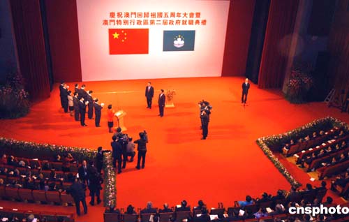 二十日,澳門隆重舉行慶祝澳門回歸祖國五周年大會(huì)暨澳門特別行政區(qū)第二屆政府就職典禮。作者:梁永強(qiáng)