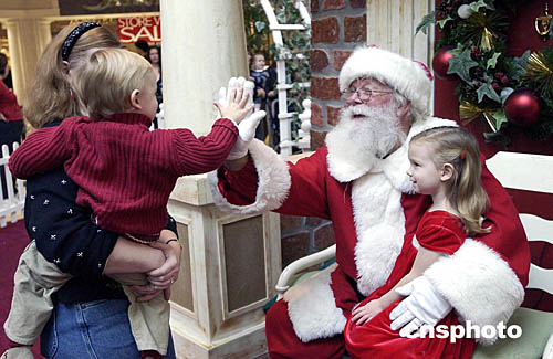 當地時間十二月二十四日圣誕節前夕,硅谷最重要的城市圣荷西的圣誕老人在購物中心關門前的最后一分鐘還在向孩子們祝賀圣誕。作者:陳鋼