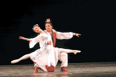 趙明:從結構上講,我用了四段三人舞來展現,愛情的發生、發展、高潮、幻滅的悲劇過程!都t樓夢》是民族經典,是中華民族的藝術瑰寶,她的包容性極強。因此,舞蹈也應有強烈的民族特點。在群舞中我運用了富有中國民間舞特點的手絹舞、扇子舞、水袖舞等,讓人一看就知道這是中國舞劇。