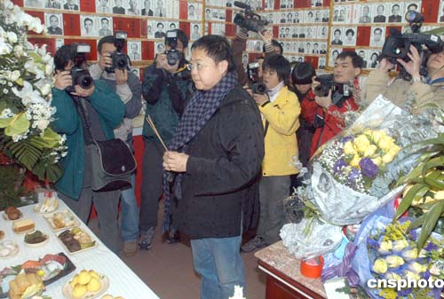 藝員羅君左12月30日到香港省善真堂出席梅艷芳悼念活動,并向梅艷芳的靈位上香拜祭。作者:鄧慶樂