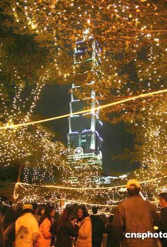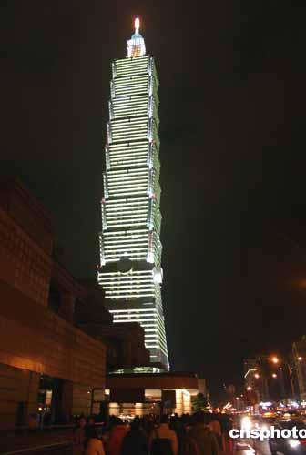 2004年12月31日夜晚,世界最高的臺北101大樓落成啟用。入夜后,整座大樓景觀燈齊亮,蔚為壯觀。作者:黃少華