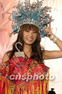 五月十七日,華人樂壇冠軍流行小天后蔡依林在北京舉行全新專輯《城堡》熱賣的慶功大會。蔡依林在現場戴上鳳冠,展示鳳袍來為自己打氣。作者:高遠