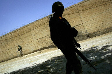 5月17日,美軍士兵在巴格達西郊的阿布格萊布監(jiān)獄內值勤。