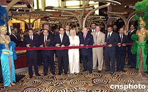 中新社澳門五月十八日電(記者 李剛)總投資額兩點(diǎn)四億美元的金沙娛樂場五月十八日在澳門開業(yè)。這是澳門特別行政區(qū)賭權(quán)開放以來開業(yè)的第一家美式賭場。