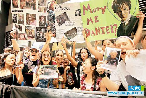 中新網5月25日電 據香港成報報道,魔幻電影《哈利波特》第三集《哈利波特與阿茲卡班的囚徒》前日在紐約作全球首映。演哈利的英國影星丹尼爾·拉德克里夫除獲不少名人捧場外,更獲數千位影迷圍睹,當中不少更舉頭著紙牌向丹尼爾當場求婚。