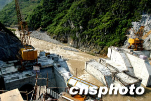 28日從被沖垮的大壩上游圍堰遠(yuǎn)眺。文林?jǐn)z