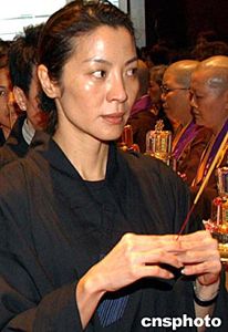 影視紅星楊紫瓊在香港舉行的佛指舍利圓滿傳供暨圓滿閉幕典禮上,虔誠(chéng)祈福。作者:錢興強(qiáng)