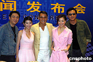 上海電影集團在上海國際電影節上推出體現上海特色、能夠產生海外影響的優秀影視作品。六月六日,由內地和香港優秀演員攜手合作的影片《長恨歌》的主創人員導演關錦鵬、黃奕、梁家輝、鄭秀文、胡軍(左起)集體亮相記者會。作者:潘索菲