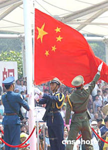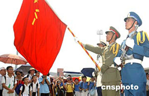 中國人民解放軍駐港部隊7月1日上午在昂船洲海軍軍營舉行升旗儀式。中新社記者:趙振清