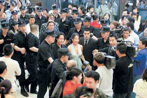 當有國際影星之稱的尊龍及身著一件青色低胸晚禮服的COCO李玟出現在新聞發布會現場時,所有的攝影記者都沖上了前,把二人圍在了一個角落里,而特意請來的十多名保鏢也無法阻止現場的混亂場面,在將近十分鐘后,在主辦方的再三警告下,現場秩序才恢復平靜。性感的李玟對于自己的這第一部電影也很是自信,“我對自己要求是很高的,當看完樣片后感覺很驚訝,覺得自己還可以,并且我還希望以后多拍攝一些影片。”由于出演“末代皇帝”而成為國際知名影星的尊龍也表示了對李玟演技的肯定,“如果說打分的話,我愿意給她100分,這絕對不是奉承,她是第一次演戲就抓住了飾演角色的特點,很自然地給觀眾呈現出了一個真實的她。”
