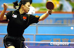 中國乒乓球隊七月二日在廣東湛江舉行熱身賽,這也是中國乒乓球隊在出征雅典奧運會前最后一次公開熱身。圖為為王楠在熱身賽中四比三險勝小將丁穎。作者:柯小軍