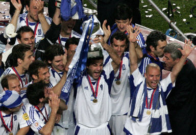 中新網7月5日電 在北京時間今天(5日)凌晨結束的2004年歐洲足球錦標賽決賽中,希臘隊憑借前鋒查里斯特亞斯的入球以1:0擊敗東道主葡萄牙隊奪得冠軍。