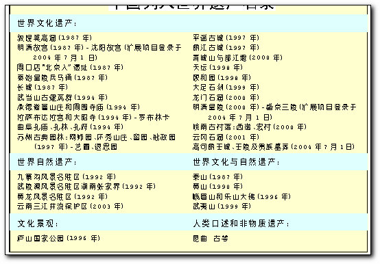 6月28日至7月7日,第28屆世界遺產(chǎn)委員會(huì)會(huì)議在蘇州召開,來(lái)自100多個(gè)國(guó)家的500余名代表聚首探討人類保護(hù)世界遺產(chǎn)。到現(xiàn)時(shí)為此,已經(jīng)有超過(guò)730個(gè)地點(diǎn)被納入世界遺產(chǎn)名錄。下面是部分世界遺產(chǎn)項(xiàng)目。