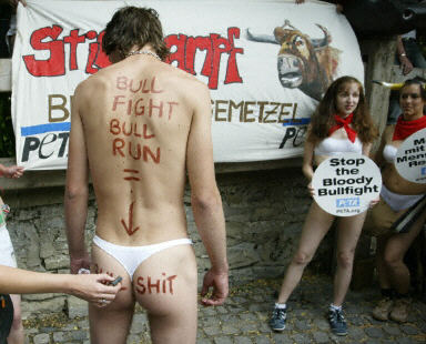 西班牙抗議者赤裸聲討奔牛節