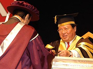 何鴻燊在典禮上授予香港演藝學院榮譽院士證書。