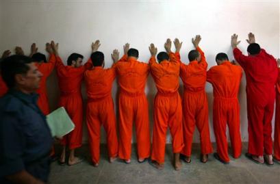曾發生美軍虐待政治犯事件的1A和1B囚室目前關押著鬧事者和問題犯人。監獄內由伊拉克控制的監區共關押有1200名犯人。在大多數囚室里,由于夏天溫度很高,犯人們都毫無生氣地躺在地上的泡沫床墊上,多數人穿著白色的長短褲或者更少的衣服。