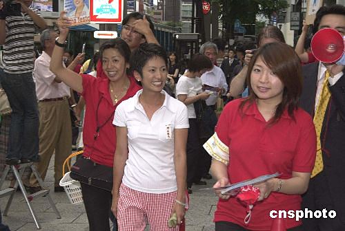 日本第二十屆參議院選舉七月十一日結束投票,并于十二日凌晨公布全部統計結果。擁有一半中國血統的日本知名電視主持人蓮舫當選為參議員。蓮舫是日本民主黨推薦的候選人,她在東京選區的競選中獲勝,這也是日本國會中首次出現華裔議員。圖為蓮舫(圖中白衣者)在日前的街頭選舉活動中。作者:王健