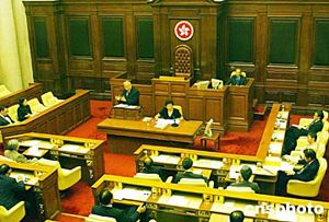 香港特別行政區行政長官董建華,七月十三日出席香港立法會舉行的會議,答復立法會議員提出的問題。作者:趙振清