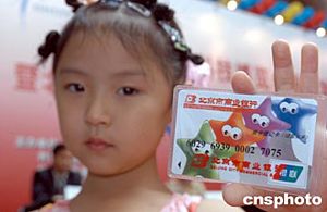 七月十四日,北京市商業銀行與共青團北京市委、北京青少年科技文化交流服務中心共同推出成長帳戶——京卡儲蓄未來卡,以有效開展青少年理財教育工作。圖為六歲的王柯竺小朋友成為該帳戶的首位用戶。作者:徐曦弋