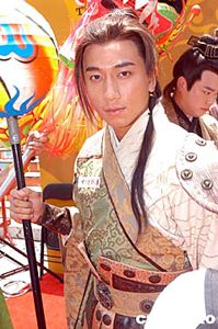 藝員林峰7月15日在香港以古裝造型出席無線電視古裝武俠劇《大唐雙龍傳》宣傳活動(dòng),林峰在新劇飾演一名小混混,憑著初生之犢的勇氣,在亂世中力爭上游。作者:鄧慶樂