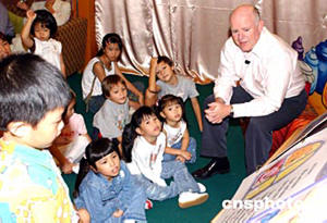 迪斯尼手牽手講故事時間與小朋友共享夏日讀書樂活動20日在香港舉行﹐十五位四至六歲的小朋友聚首一堂﹐在香港迪斯尼樂園集團行政總裁羅彬深先生帶領下﹐一起跳進迪斯尼的繽紛童話世界﹐籍此培養(yǎng)小朋友的讀書興趣。作者:趙振清