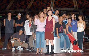 鄭秀文的歌唱老師杜莉薩到場打氣,并與一眾舞蹈藝員排練后合照。