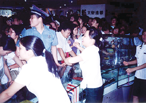 一個小時的簽售很快過去,當林俊杰從秘密通道撤退時,仍舊有近千名歌迷買了碟但沒簽到名。“簽完!簽完!”“退貨!退貨!”在大聲的挽留與抗議中,現場秩序立刻失控,歌迷們擠破保安的人墻沖向空空如也的簽售臺。書城立刻放下大廳內的第二道卷簾門阻止歌迷,但歌迷們紛紛從卷簾門下方匍匐著爬了進來,不少女歌迷被擠得當場痛哭失聲。