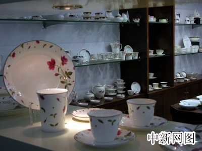 海格雷公司展示廳中的骨質(zhì)瓷產(chǎn)品。(秦欣攝)