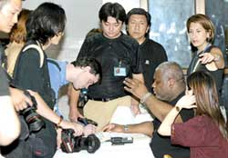 本次演唱會門禁森嚴(yán),對攝影更是看管嚴(yán)格,攝影記者需要簽協(xié)議入場,保證所拍圖片只用于報道本次演唱會,而且只有90秒的拍攝時間。即便如此,黑人保鏢們?nèi)匀凰奶幯策墸藢τ浾叩摹翱垂堋蓖猓杳砸彩潜P查對象,許多進行攝像的歌迷都在工作人員監(jiān)督下刪除了拍攝內(nèi)容。