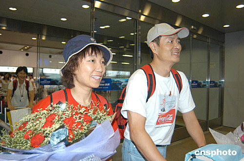 七月二十六日下午,代表全球華人參加二零零四雅典奧運圣火希臘本土傳遞的孫雯和濮存昕結束了華人火炬手的首次奧運圣火之旅返抵北京國際機場。兩人與成龍作為中國火炬手于七月二十四日參加了希臘本土的奧運圣火傳遞。作者:徐曦弋