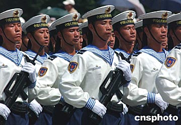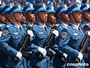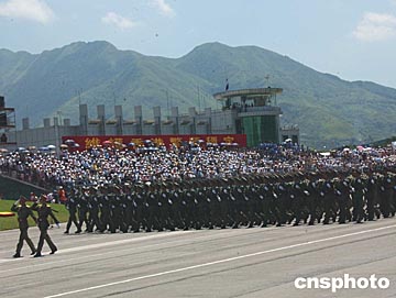 中新網香港八月一日電(記者尹丹丹)香港回歸七年來,駐港部隊今天首次公開閱兵,包括政府高官、社會名流和眾多第二屆立法會議員在內的逾一萬五千名香港市民,在新界石崗軍營親睹了陸海空三軍逾三千官兵參加的隊列操演。