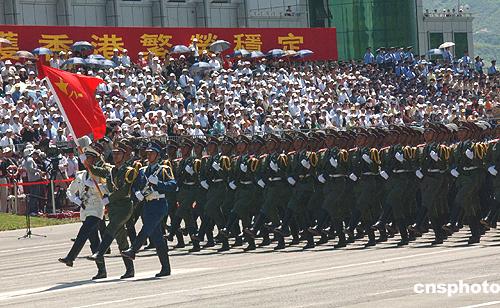 8月1日,香港回歸七年來(lái),駐港部隊(duì)今天首次公開閱兵,包括政府高官、社會(huì)名流和眾多第二屆立法會(huì)議員在內(nèi)的逾一萬(wàn)五千名香港市民,在新界石崗軍營(yíng)親睹了陸海空三軍逾三千官兵參加的隊(duì)列操演。