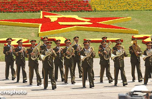 駐港部隊軍樂隊演奏行進表演。作者:中新社