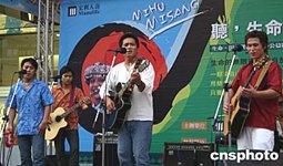 圖:臺灣原住民歌手街頭義唱
