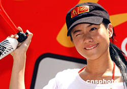 林嘉欣客串快餐服務員 甜美笑容掩飾糟糕中文(圖) (2004-01-15)