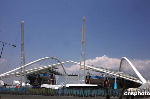 位于雅典市郊體育中心內(nèi)的雅典奧運(yùn)會(huì)主體育場(chǎng)萬(wàn)事齊備,迎接本屆奧運(yùn)會(huì)的到來(lái)。中新社記者:任晨鳴