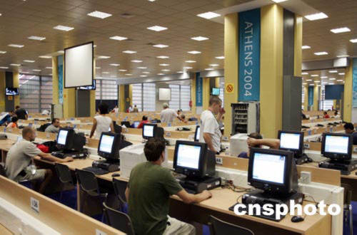 距離奧運會開幕尚有近一個星期,各國記者已趕赴雅典,當地時間八月八日,記者們進入雅典奧運會新聞中心開始工作。中新社記者:毛建軍