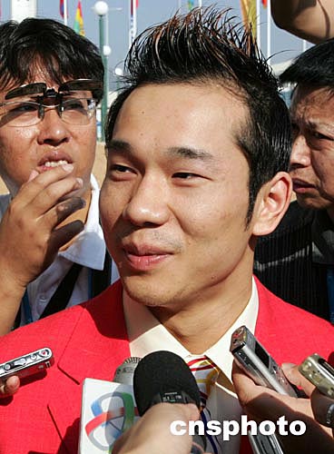 當(dāng)?shù)貢r(shí)間八月九日上午,參加雅典奧運(yùn)會(huì)的中國(guó)男子舉重六十二公斤級(jí)名將樂(lè)茂盛向記者表示,他的時(shí)尚發(fā)型可以幫助他樹(shù)立堅(jiān)強(qiáng)信念。中新社記者:毛建軍