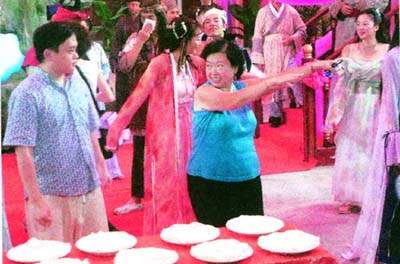 對于自己這個白衣長老的造型,薛家燕說:“本來不用粘這些胡子的,但我覺得粘上去會逼真很多,而且效果也很明顯,不過粘了上去以后你會覺得很辛苦,特別是這么熱的天氣。”雖然只是合作了幾天,但薛家燕對孔慶翔依然是贊不絕口,“他雖然是新人,但是我覺得他的演出已經是很專業和投入,他很努力,每天的對白都背得很熟。其實在這部電影里,我們不需要他有特別的演出,只要做本能的演出就可以了,例如你們剛才看到的,召喚飛鳥來救我他只需在旁邊鼓掌就行了,而那些動作武打戲份就讓我和恬妞去分擔,我希望大家可以給點時間讓他去磨練。”薛家燕對他的演出打了一個80分,欠缺的20分她認為應該是外界看了這部片以后給的。